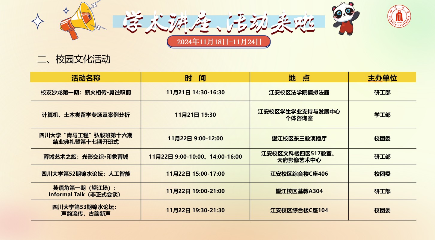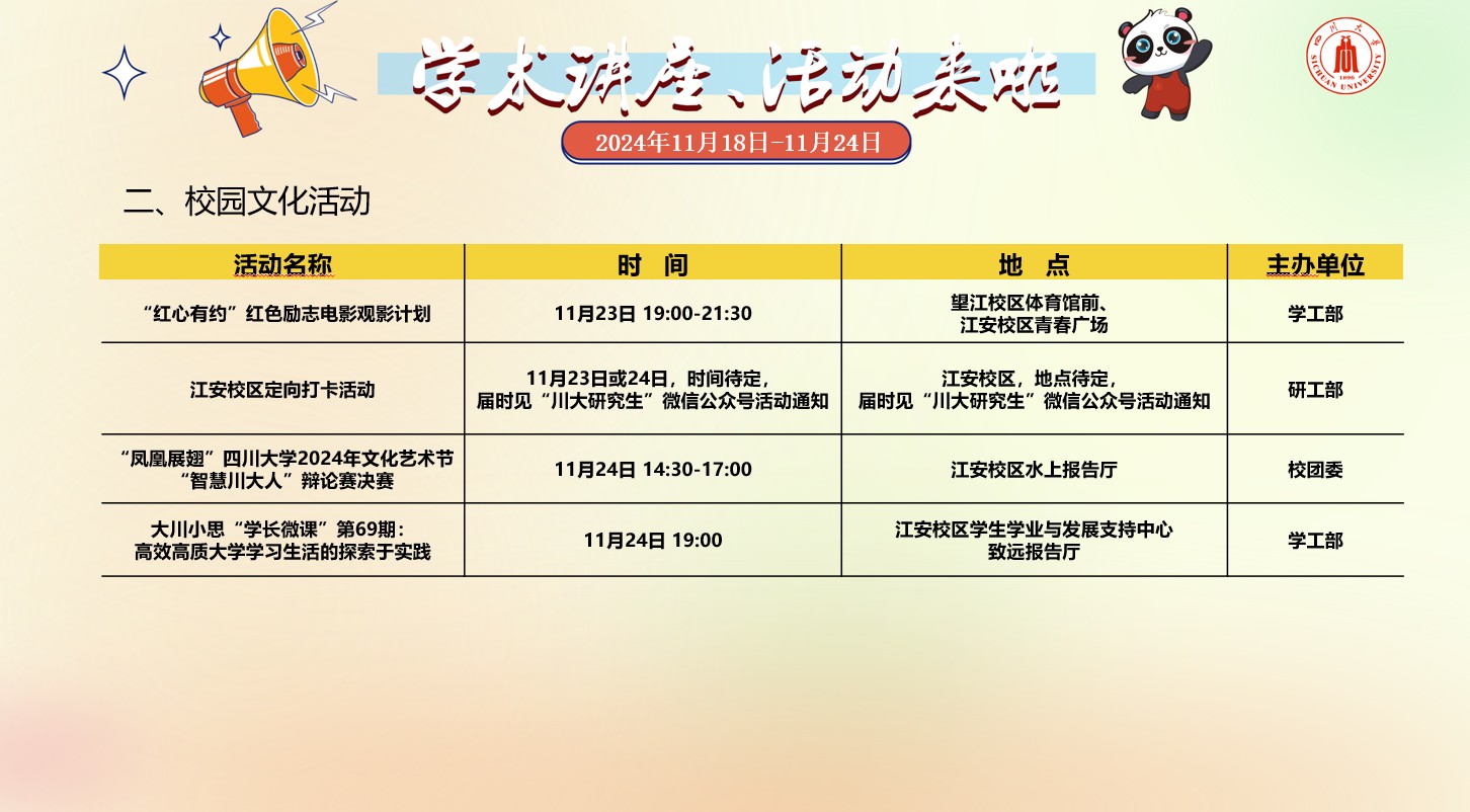 yl23455永利集团2024年11月18日-24日学术讲座及校园文化预告