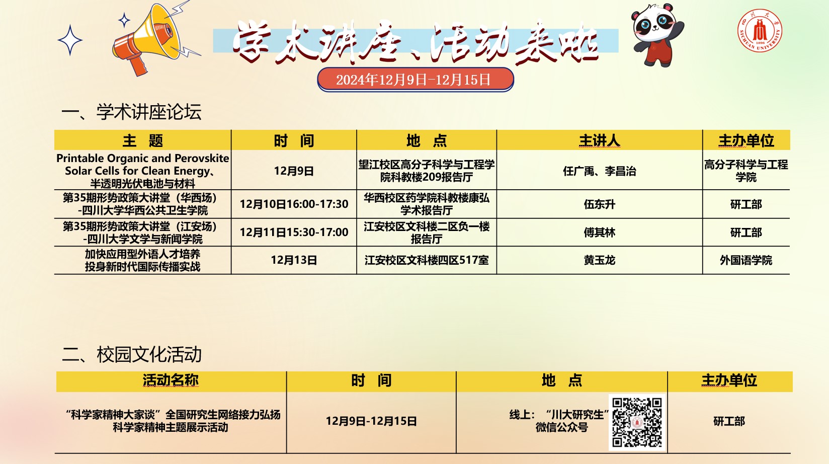 yl23455永利集团2024年12月9日-12月15日讲座及校园文化预告