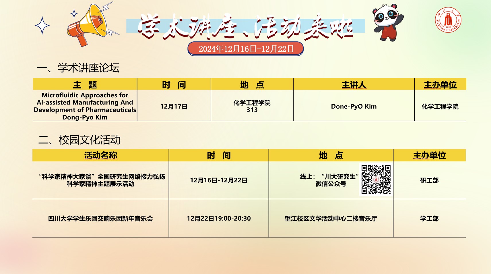 yl23455永利集团2024年12月16日-12月22日讲座及校园文化预告