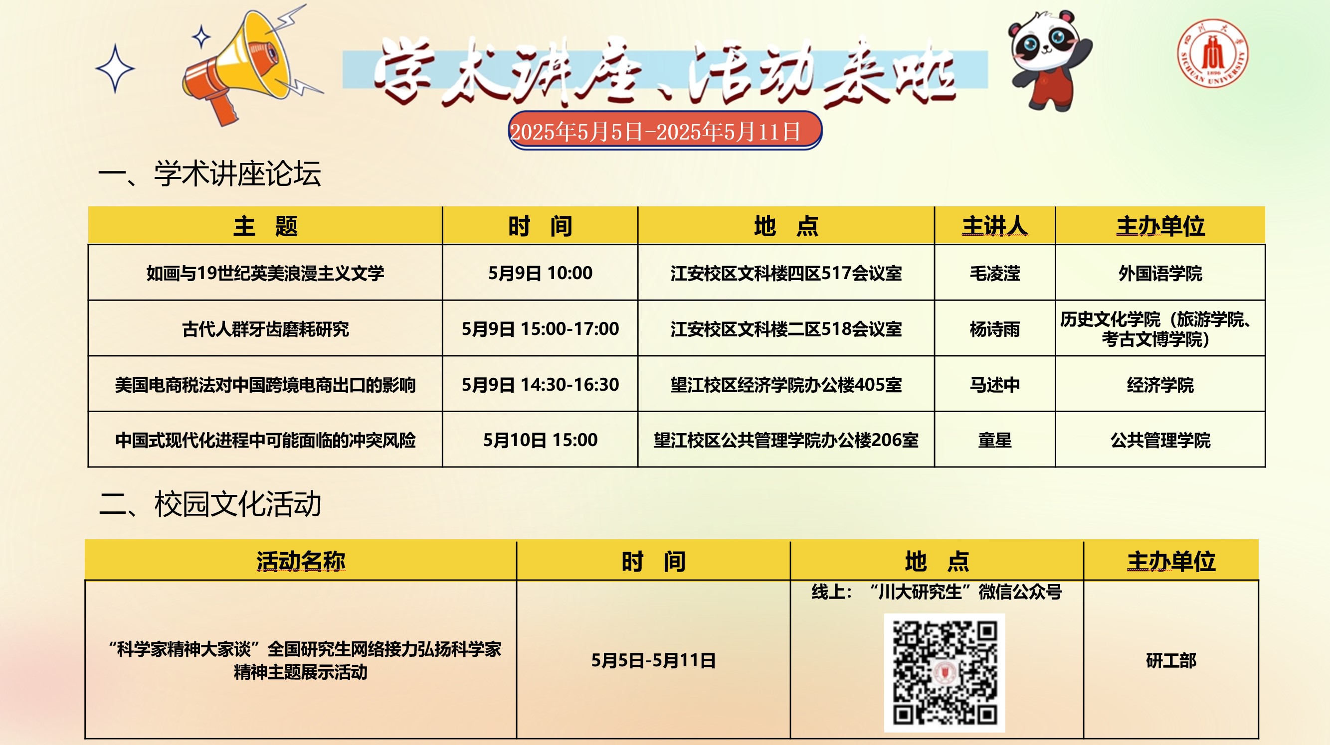 yl23455永利集团2025年5月5日-5月11日学术讲座论坛及校园文化活动预告