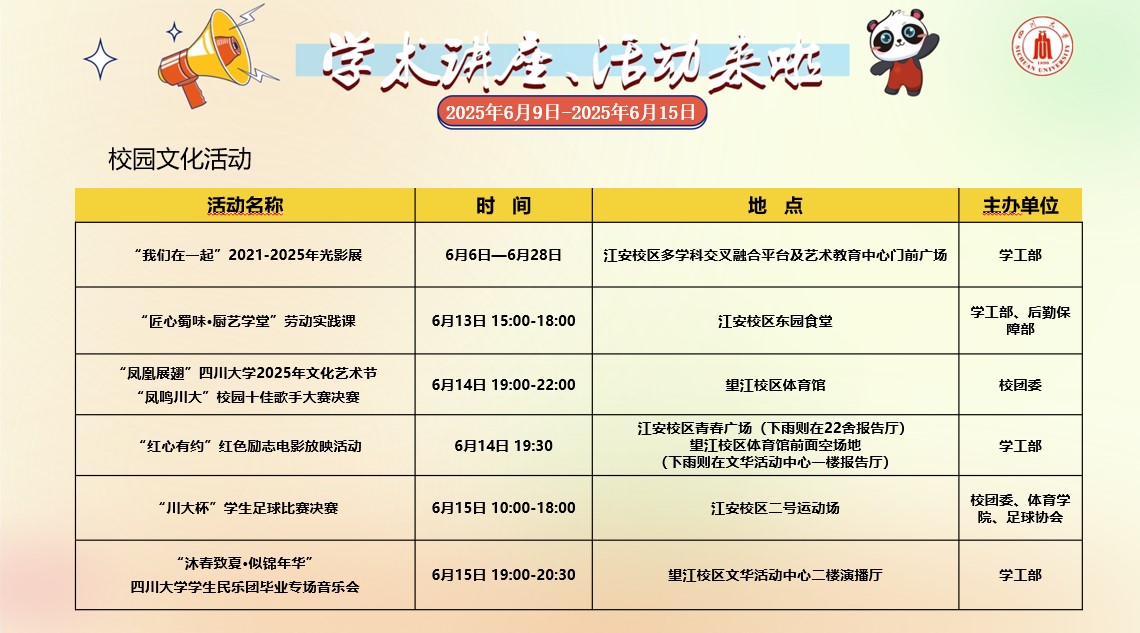 yl23455永利集团2025年6月9日-6月15日学术讲座论坛及校园文化活动预告