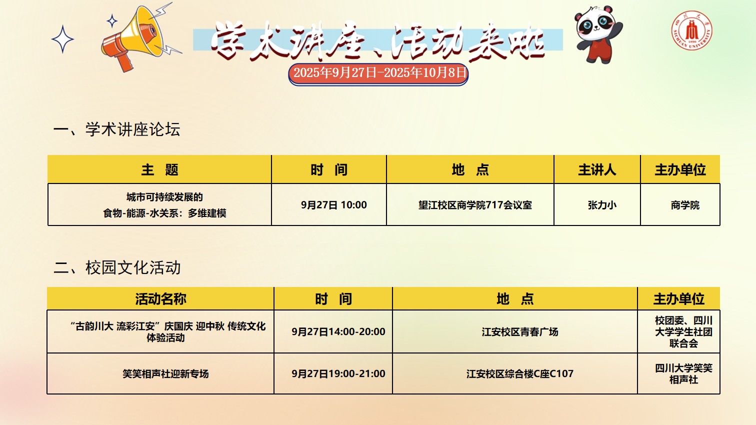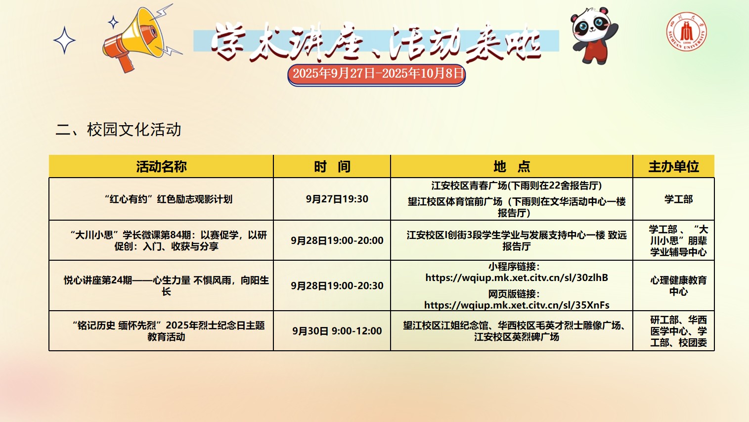 yl23455永利集团2025年9月27日-2025年10月8日校园文化活动预告