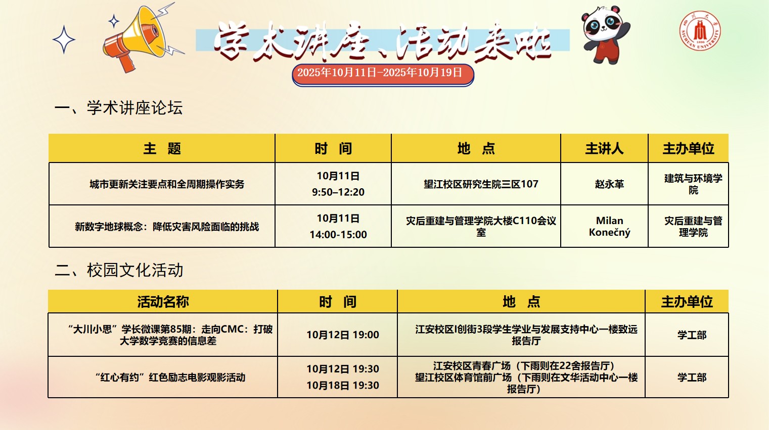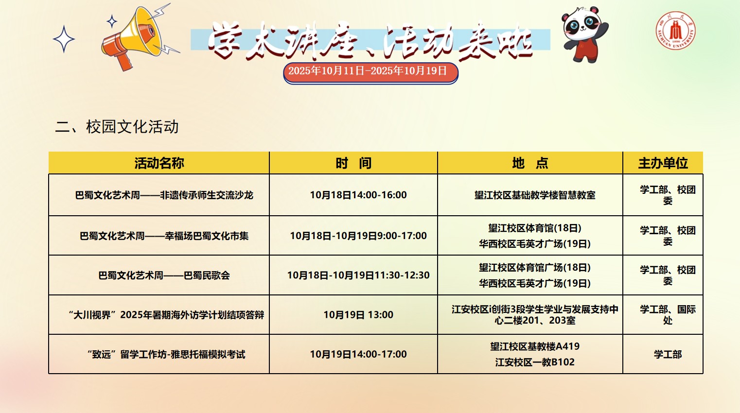 yl23455永利集团2025年10月11日-2025年10月19日校园文化活动预告