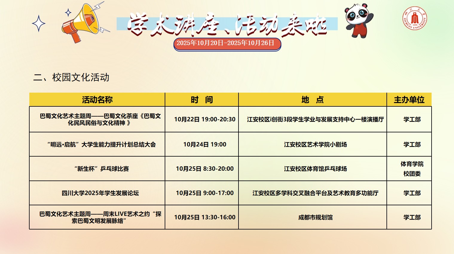 yl23455永利集团2025年10月20日-2025年10月26日校园文化活动预告