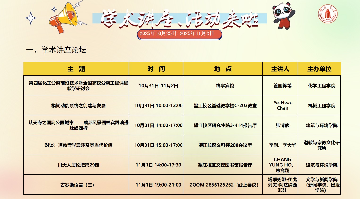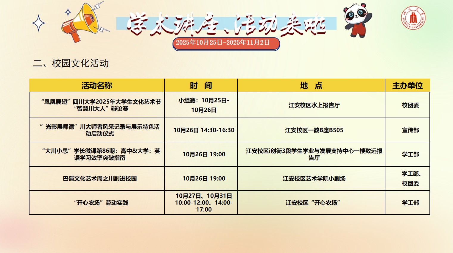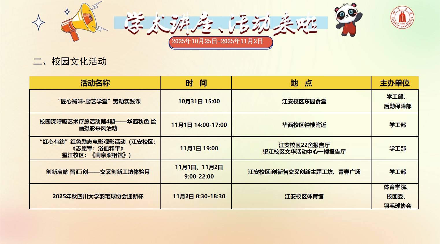 yl23455永利集团2025年10月25日-2025年11月2日校园文化活动预告
