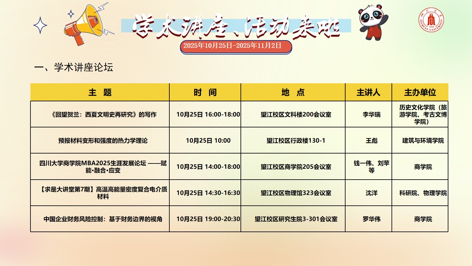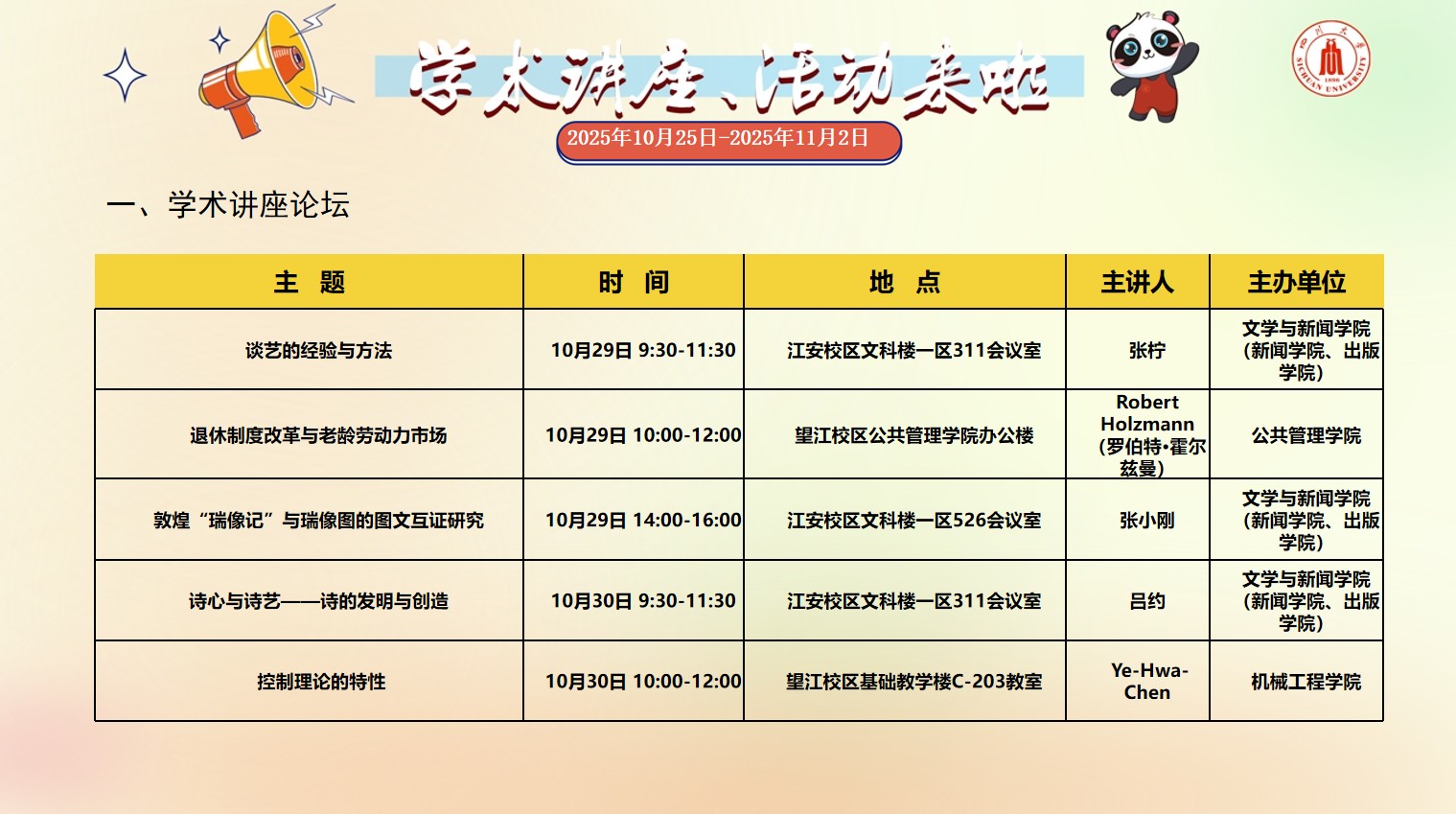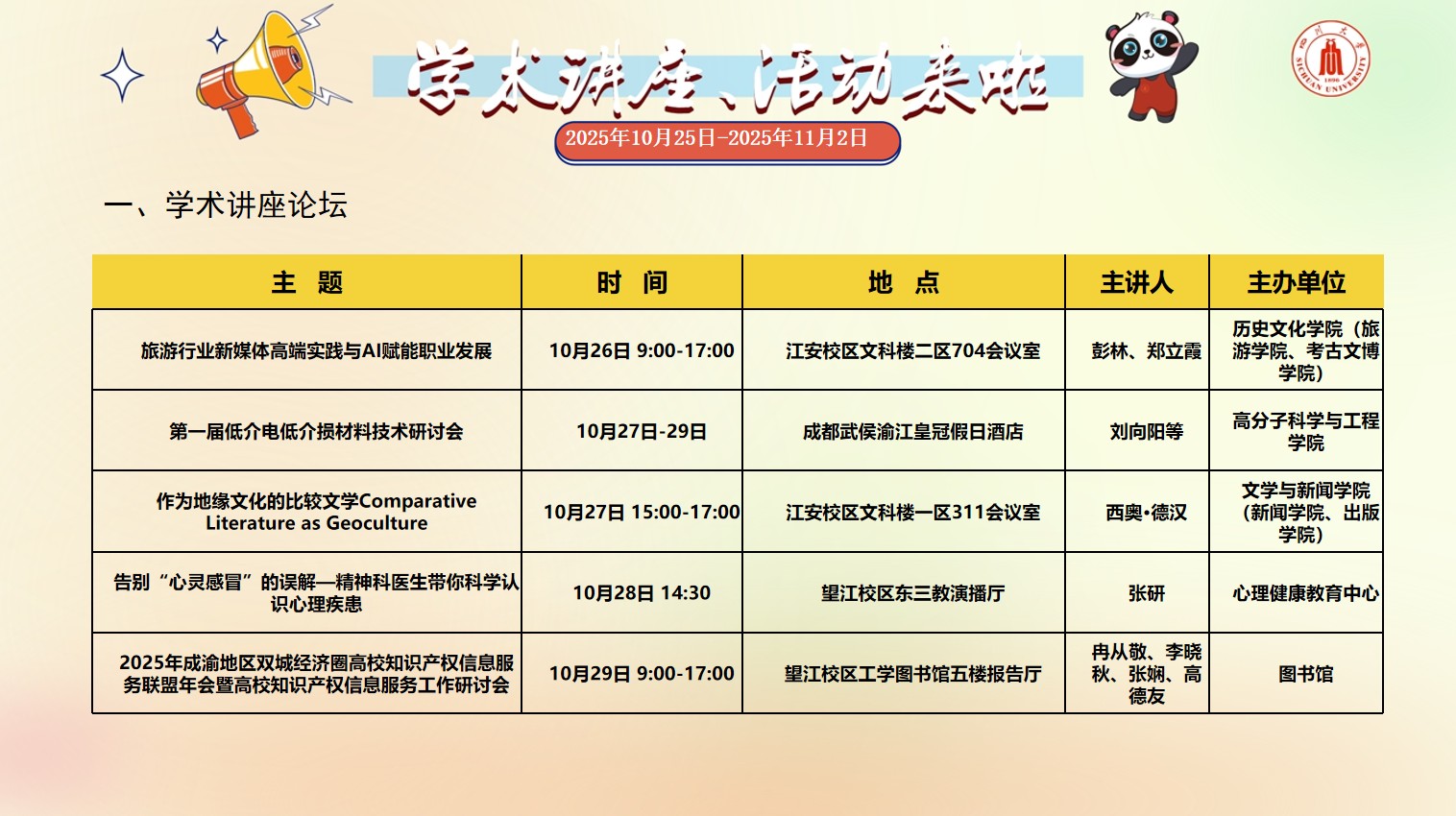 yl23455永利集团2025年10月25日-2025年11月2日校园文化活动预告