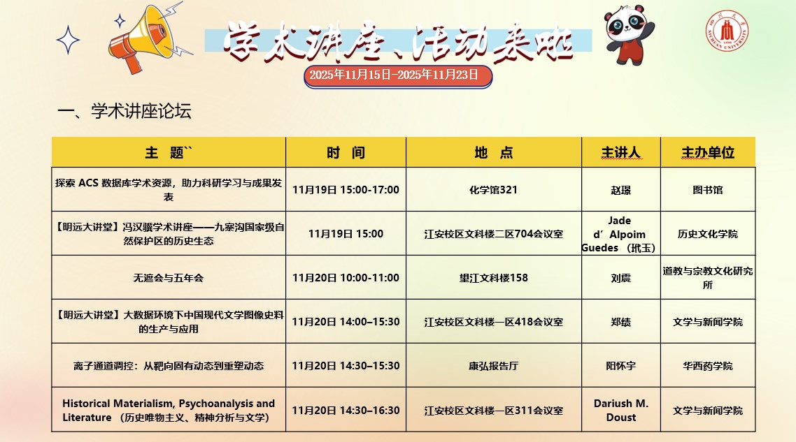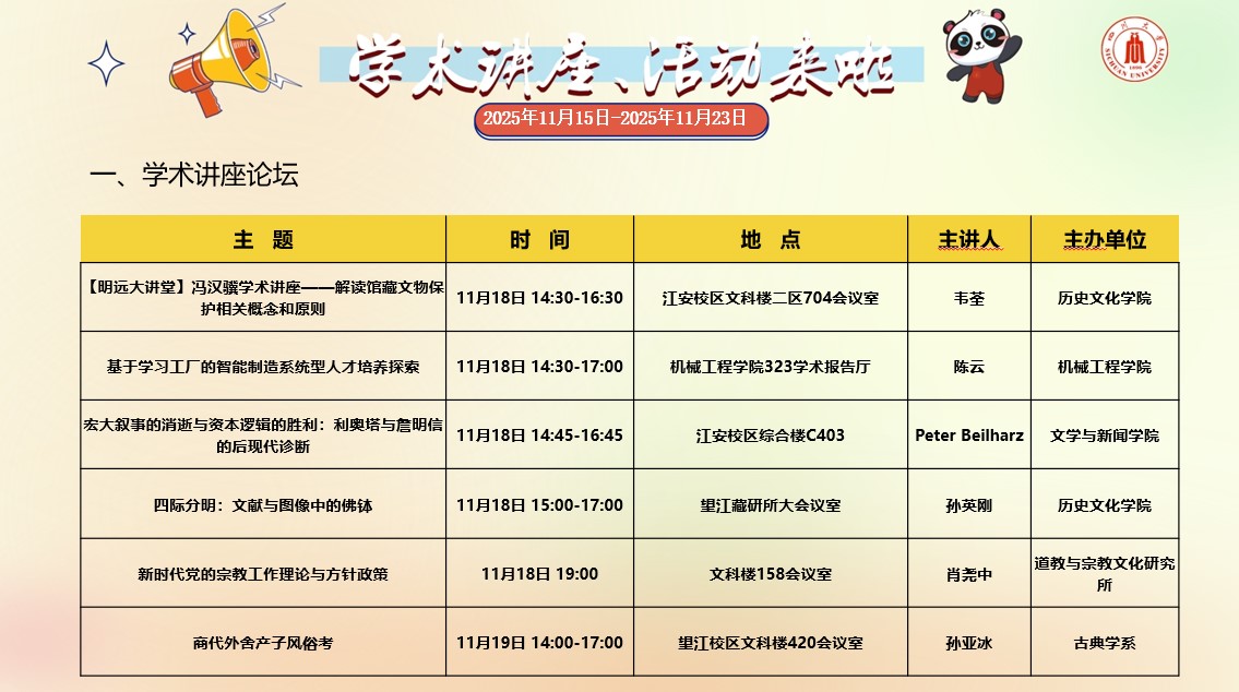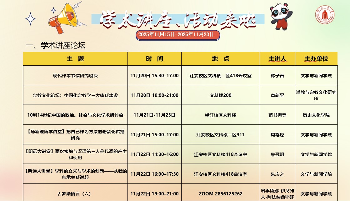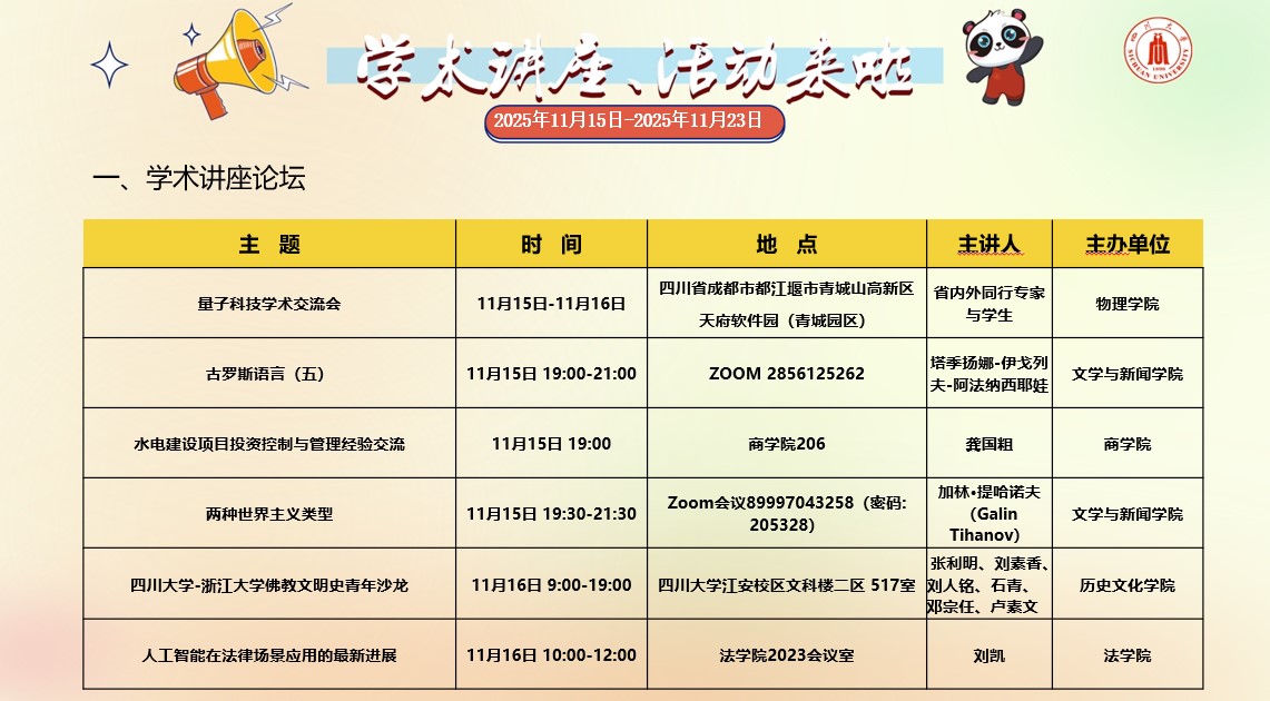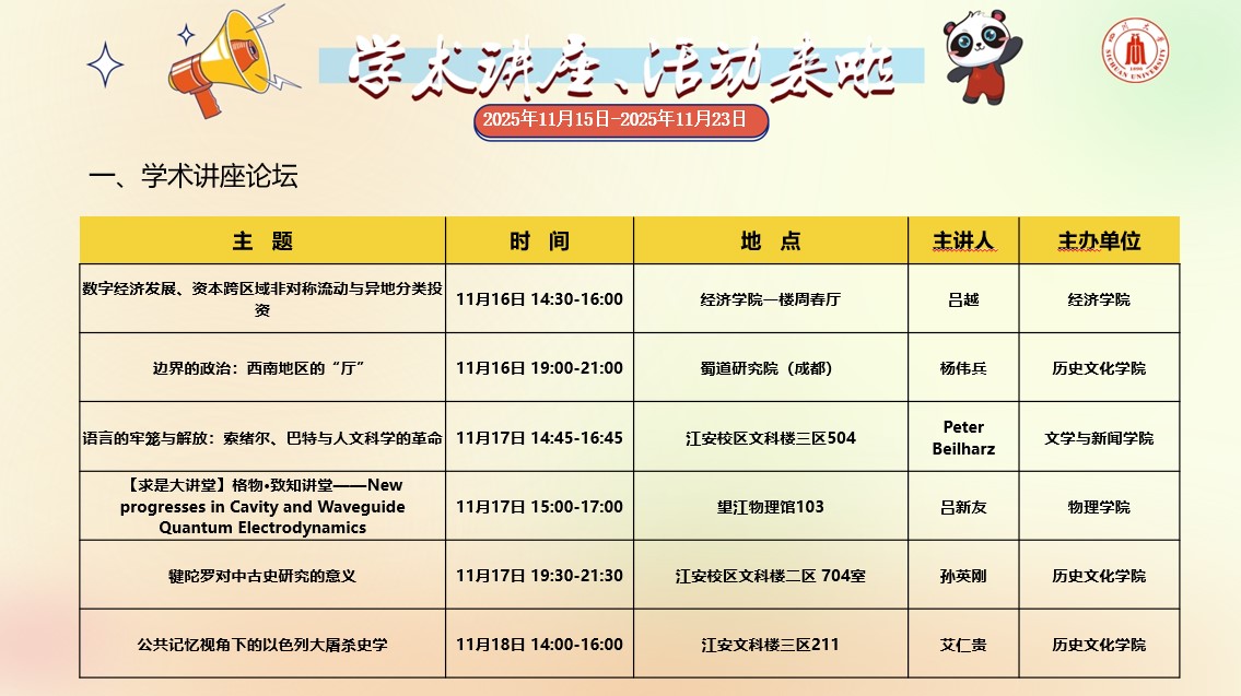 yl23455永利集团2025年11月15日-2025年11月23日学术讲座和校园文化活动预告