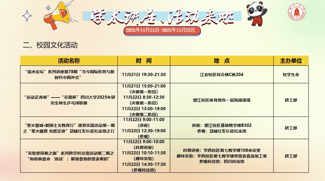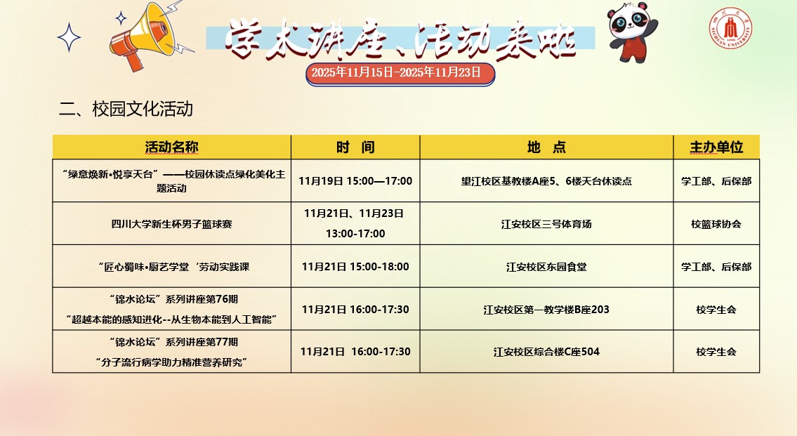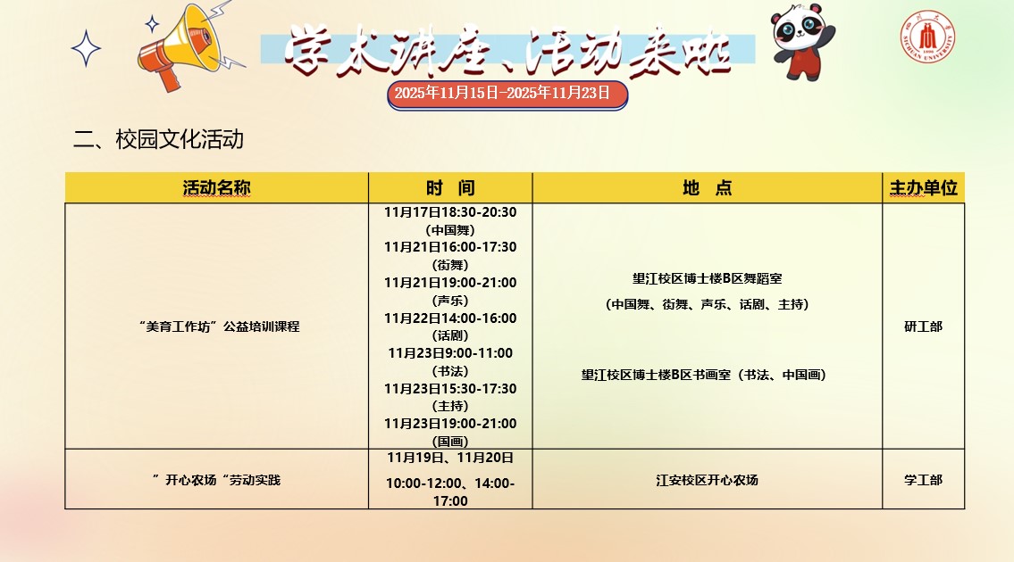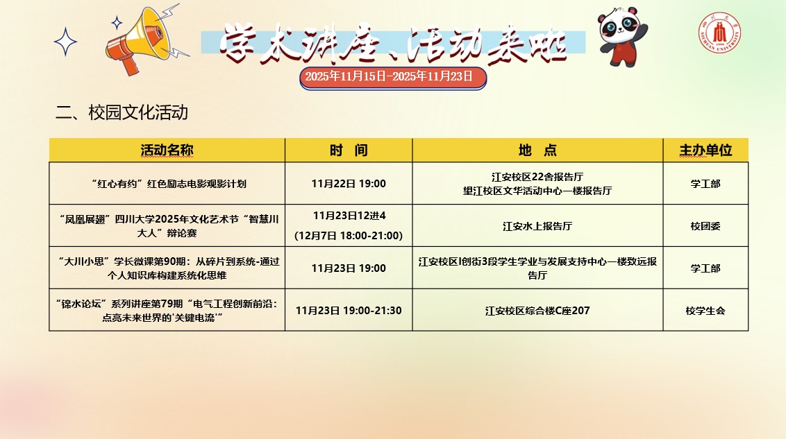 yl23455永利集团2025年11月15日-2025年11月23日学术讲座和校园文化活动预告