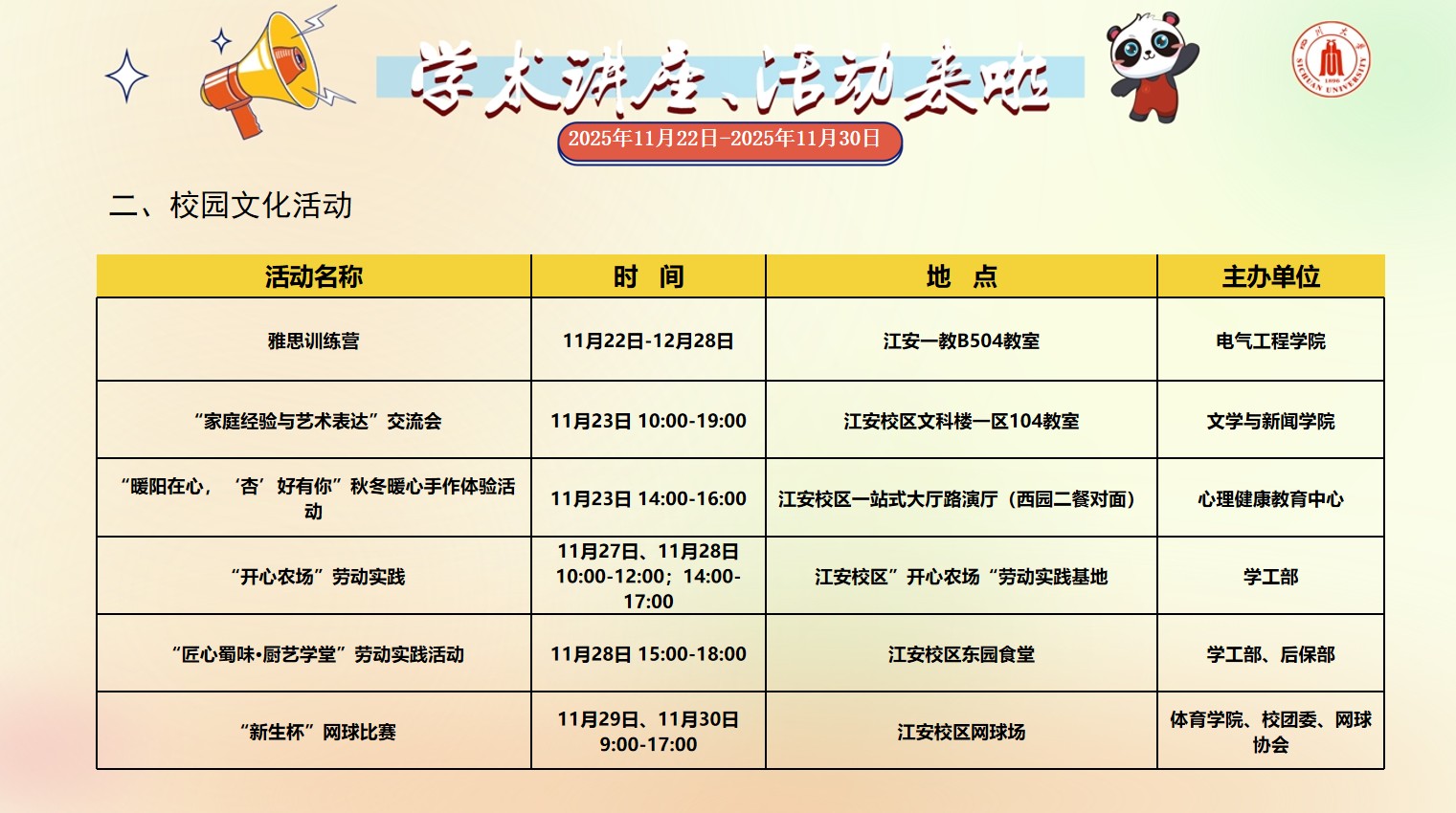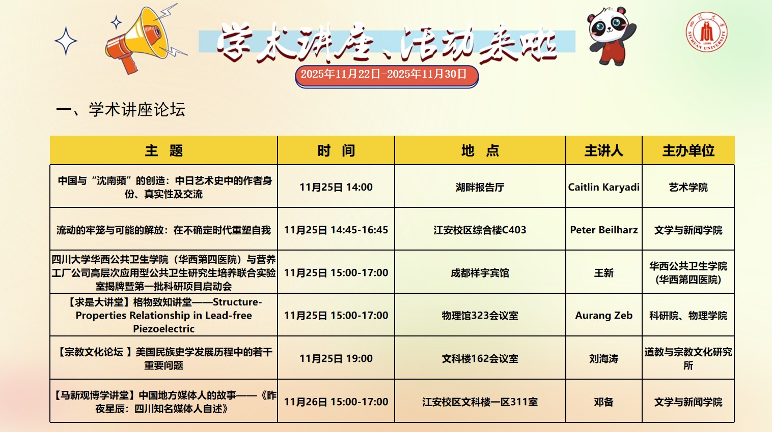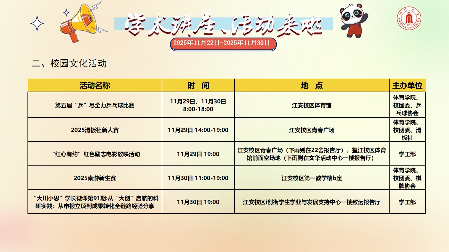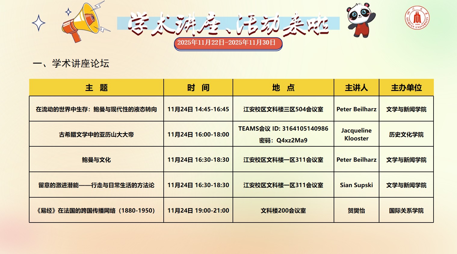 yl23455永利集团2025年11月22日-2025年11月30日学术讲座和校园文化活动预告