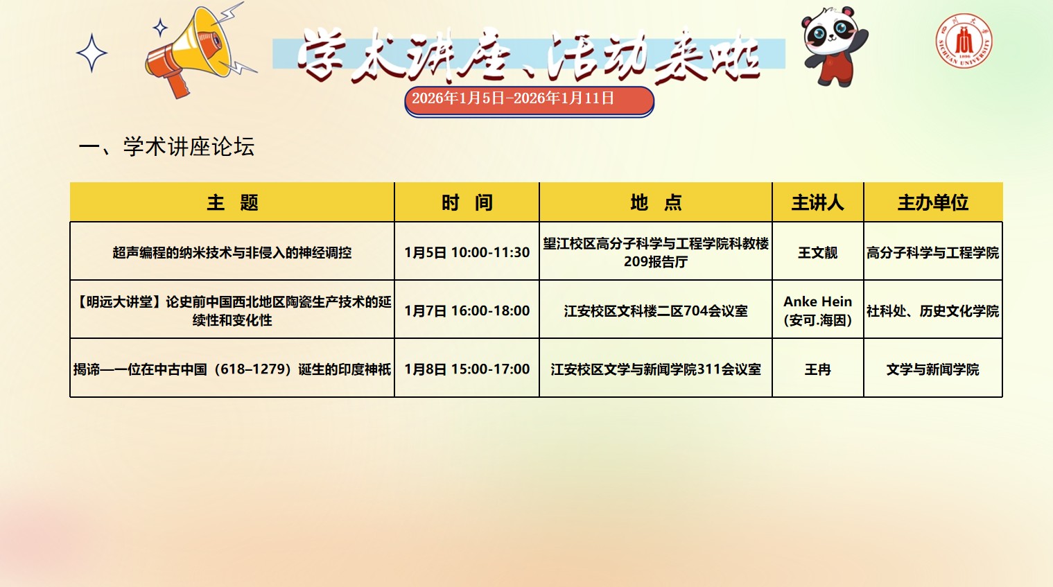 yl23455永利集团2026年1月5日-2026年1月11日学术讲座预告