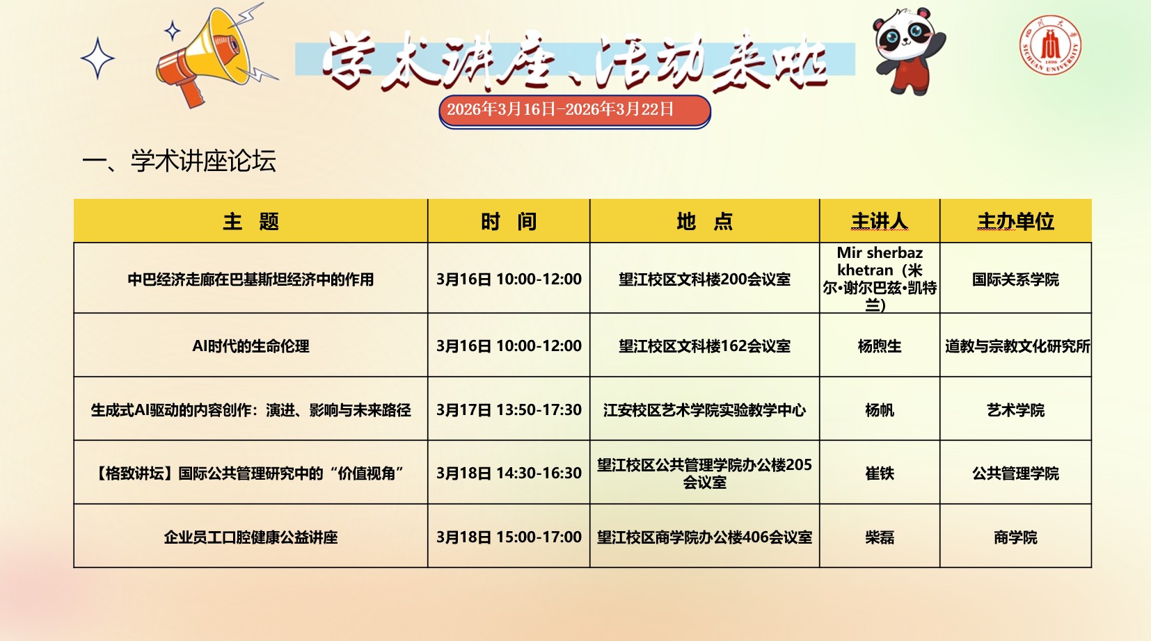 yl23455永利集团2026年3月16日-2026年3月22学术讲座预告