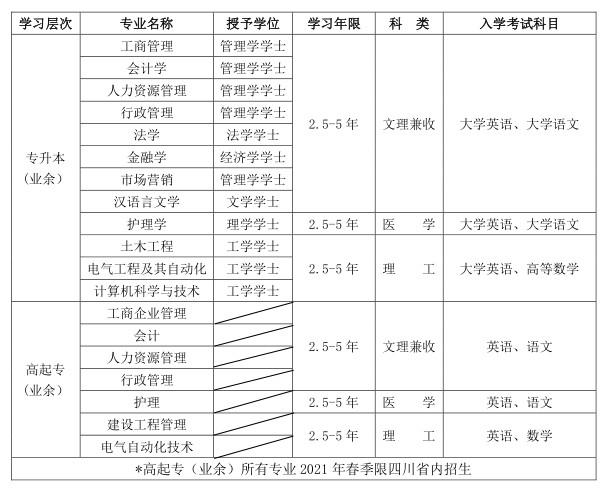 2.具有国民教育系列大专或大专以上毕业文凭者可报考专升本(业余)专业;