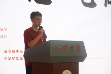 新生代表、2023级环境工程专业范一飞同学表达了来到成都、来到川大、来到建环学习的欣喜,倡议同学们要坚持初心、不负韶华,要脚踏实地、自强不息,未来要努力做一个心中有梦、眼中有光的川大建环青年,在风华正茂的年纪书写青春的新篇章。