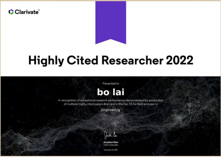 科睿唯安(Clarivate Analytics)发布了2022全球高被引科学家榜单“Highly Cited Researchers2022”,我院环境系赖波教授入选全球高被引科学家。yl23455永利集团2022年共入选13人。