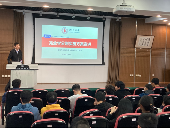 3月5日,建筑与环境学院工程力学拔尖学生培养工作小组,在江安校区建筑与环境学院二楼学术报告厅,组织工程力学专业拔尖学生开展了完全学分制宣讲活动,向工程力学专业“强基计划”和“拔尖计划2.0”的同学讲解了完全学分制的实施方案。力学科学与工程系分管本科教学的副系主任王蒙副教授,拔尖学生培养工作小组其他成员,以及工程力学专业“强基计划”和“拔尖计划2.0”的同学参加了宣讲会。