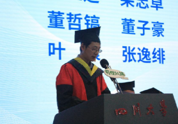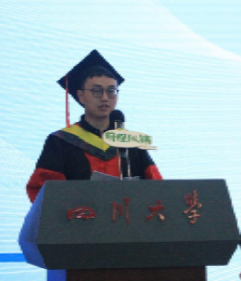 力学系博士毕业生舒敬恒作为研究生代表发言。他指出,过去,同学们在知识的海洋中乘风破浪,掌握科学的力量。未来,同学们将在时代的浪潮中昂首挺胸,传承民族的精神,为国家的繁荣富强添砖加瓦。