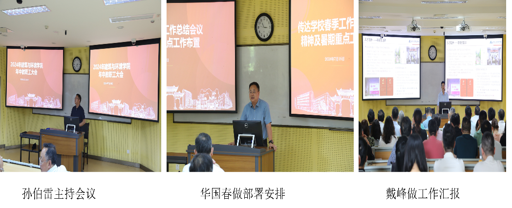 华国春传达了7月10日学校召开的2024年春季学期工作总结会暨四项重点工作方案讨论会精神,并对学院暑期重点工作做安排布置。华国春强调,全体教师应及时学习消化理解7月10日学校会议精神,跟上学校发展步伐,与学校、学院同频共振,持续深化暑期党纪学习教育工作开展,及时学习领会、认真贯彻落实党的二十届三中全会精神,严格按照学校、学院暑期工作安排切实安排暑期工作,主动、积极思考谋划新学期各项工作,为推进一流学科建设贡献力量。