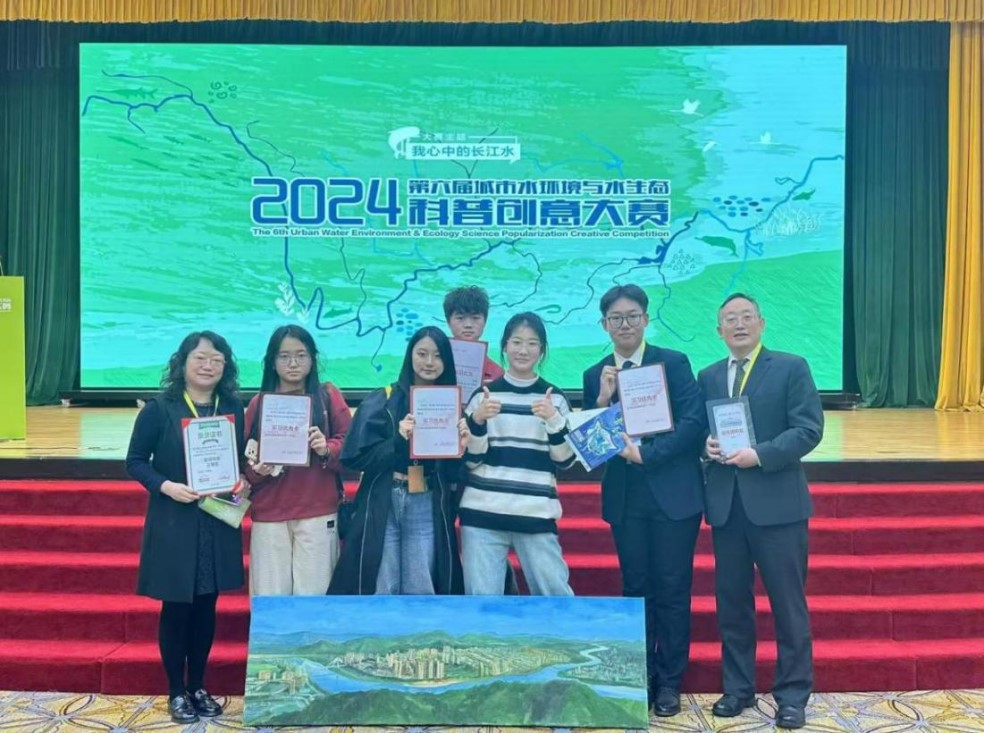 10月26日,2024(第六届)城市水环境与水生态科普创意大赛决赛在北京举行。环境系刘敏教授、陈滢副教授指导的、2023级环境工程专业学生团队制作的微电影《寻鱼》取得第四名的好成绩,荣获三等奖。学校荣获最佳组织奖。团队学生获得多家大型企业实习优先卡。在总决赛中,团队同学进行了精彩的PPT汇报,并展示了绘画作品《三江汇流》。