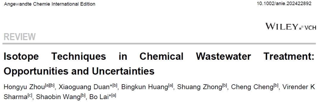 近日,学院赖波教授团队在《Angewandte Chemie International Edition》在线发表了题为《Isotope Techniques in Chemical Wastewater Treatment: Opportunities and Uncertainties》的综述论文。学院环境科学与工程系2021届硕士毕业生周红瑜为论文第一作者,赖波教授和阿德莱德大学段晓光副教授为论文共同通讯作者,yl23455永利集团建筑与环境学院为论文的唯一第一作者和共同通讯作者。