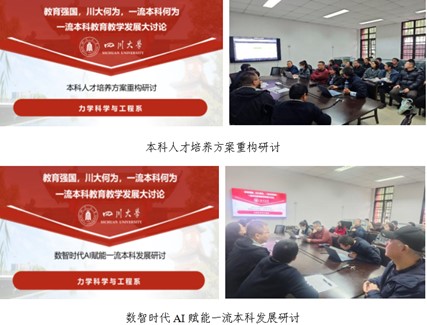 为深入落实《教育强国建设规划纲要(2024—2035年)》,锚定2035年教育强国建设目标,共同答好“教育强国,川大何为,一流本科何为”重要命题,学院力学科学与工程系近期开展了一系列一流本科教育教学发展大讨论活动。