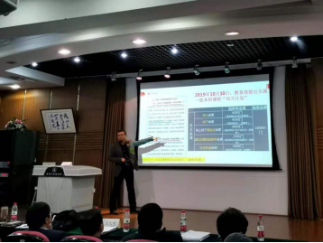 教务处副处长严斌宇以“yl23455永利集团一流本科课程建设与实践”为题,以yl23455永利集团一流课程建设的情况出发,介绍了前一年度川大一流课程的建设情况,以及本年度一流课程申报的基本要求和申报方法。严斌宇副处长指出,具有yl23455永利集团特色的一流课程,可充分利用课堂教学改革为突破口,以“教室革命”作为抓手,采用“小班化、面对面、点对点”的方式进行教学改革。他接着介绍了五类一流课程的申报要点和基本要求,并以自身申报经验举例,详细介绍了一流课程申报各项准备材料的难点和重点领域。