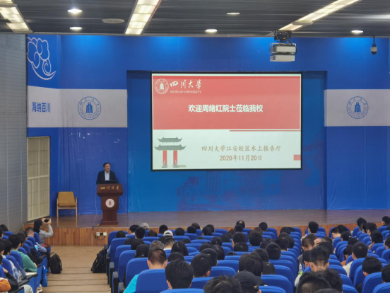 11月20日14:00,中国工程院院士、重庆大学钢结构工程研究中心主任周绪红教授在江安校区水上报告厅为我校土木工程、水利工程专业2020级新同学作了题为“土木工程的发展与展望”的土木工程概论课专题报告。学校常务副校长许唯临教授出席并主持报告会,建筑与环境学院院长熊峰教授,学校土木系、水利系教师代表和2020级土木工程、水利工程新同学400余人参加报告会。