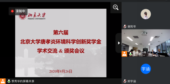 北京大学环境科学与工程学院现场,唐孝炎院士、张远航院士等参加颁奖典礼并致辞