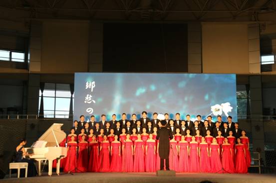 决赛现场,精彩纷呈,各学院合唱队均有优秀表现。学院合唱团第九个登场,演唱自选曲目《乡愁四韵》,给观众和评委以纷飞的雪花与馥郁的腊梅香缭绕交织的意境,将浓厚的乡愁、绵长的忧思展现得淋漓尽致。合唱团同学们稳定的发挥、悠扬婉转的歌声征服了在场观众和评委。必选曲目《我和我的祖国》的演唱深情款款,抒发出了青年学子的爱国情,演唱技巧方面,尾音的处理别出心裁,令评委眼前一亮。最终取得了93.24的高分。