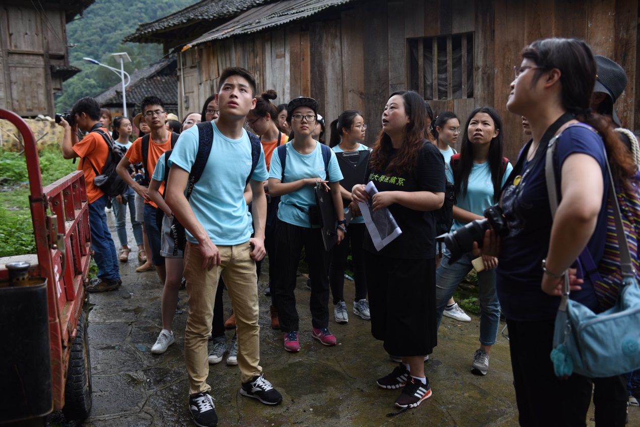 开幕式后,师生一行人先熟悉水葩古寨概况,同学们也先尝试着使用测绘仪器。同行的电视台记者对老师及学生代表进行了采访,了解了本次测绘的意义。