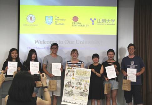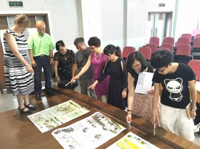 7月11日13:30,建环学院中英日风景园林交流营联合设计终期汇报在江安校区学院二楼学术报告厅举行。英国谢菲尔德大学Helen Woolley教授、刘孝仪讲师,日本千叶大学木下勇教授,建环学院建筑系副主任毛颖老师、沈一教授、罗言云副教授、王霞老师、王倩娜副研究员,及此次中英日风景园林交流营的全体中外学生。本次交流营把中英日学生分为六个小组,每个小组在前期场地调研、中期汇报之后,在前期成果的基础上,对所选场地的儿童户外活动空间展开了研究设计,并以竞赛的形式进行。