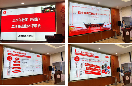 汇报全面总结了我院招生工作的亮点和特色,特别是学院配套政策上的支持受到了在场招办领导和各学院的高度赞赏。同时,在兰中仁副院长的带领下招生工作组积极创新,主动出击,为服务中学定制的致敬中学“菜单”也是我院招生工作中的一大创新和亮点。并且,在过去一年招生工作小组成员们的共同积极努力下,我院招生宣传工作也取得了良好的成绩。