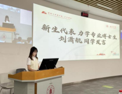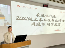 2021级土木工程专业博士研究生周冠宇、2023级力学专业博士研究生刘潇航先后作为在校生和新生代表分别发言。周冠宇结合个人经历与体会,以“学会做好科研与职业规划,保持健康身心”为主题与同学们做了交流。刘潇航表达了在川大挑战科学难题、攀登学术高峰的憧憬与期待。