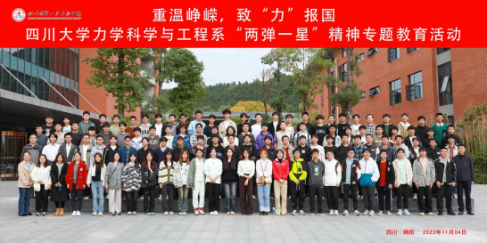 “热爱祖国、无私奉献,自力更生、艰苦奋斗,大力协同、勇于攀登。”是“两弹一星”精神的内涵,激励和鼓舞了几代人,是中华民族的宝贵精神财富。为继承和发扬“两弹一星”精神,引导学生深刻理解“两弹一星”精神科学内涵。11月4日-5日,力学科学与工程系副系主任王蒙,青年教师李浪、唐鹏飞和学院辅导员周琦颖带领2022、2023级力学系本科生赴四川“两弹一星”干部学院开展了为期两天的“两弹一星〞精神专题教育活动。