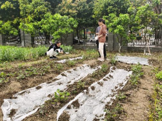 田间四月,草长莺飞,春风吹绿了野草,也吹动了党员同学们劳动的热情。2021级本科支部书记梅兰菊老师首先跟大家强调了劳动实践的重要性,指出党员要发挥先锋模范带头作用,同学们仔细聆听,颔首赞同。任务分配与合理分组完成后,大家配好装备,随即热情有序地投入到春耕活动之中。除草的同学在老师的帮助下辨别杂草,掌握斩草除根的要领;耕种的同学积极开垦土地,配合默契,高效完成播种;最后全员完成浇水,覆盖保护膜防止鸟类破坏种子发芽。师生一起顶着炎炎烈日,共同劳作,大家都热情高涨,齐心协力,互帮互助,锄地播种、施肥填土、灌菜浇花,整个农场里弥漫着其乐融融的氛围。