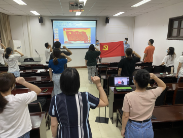 为庆祝中国共产党99华诞,进一步强化党员教育,充分发挥学生党员的先锋模范作用,学院研究生环工一支部全体党员于2020年7月8日上午在明德楼128多媒体教室通过线上线下相结合方式,开展了以“庆党的生日、讲战疫故事、悟初心使命”为题的“七·一”主题党日活动。