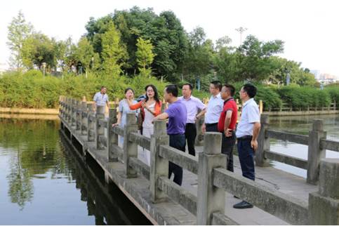 在城东新区姚家河一段C区、文创公园、东湖公园,学院调研组实地查看了城镇建设和污水治理等情况。环境系副系主任余江就长滩寺河水环境治理、水生植物对水质净化和景观提升等提出了意见和建议。