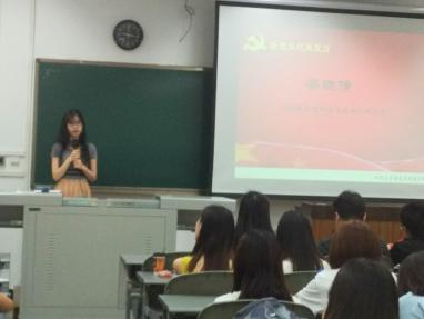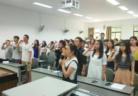此次宣誓活动由景观研究生党支部书记廖宇嘉主持,在全体党员唱响雄壮的《国际歌》后,宣誓仪式正式开始。博士研究生陈琳同志带领全体党员宣读誓词。“我志愿加入中国共产党……”教室里响起阵阵激昂的宣誓声,每位党员都用发自内心的声音抒发对党忠诚的决心,面对着党旗,大家接受了一次身心的洗礼。宣誓完毕后,来自2015级环境科学专业硕士研究生的新党员代表安晓倩和来自2016级土木工程专业的博士研究生的老党员代表刘杨分别发言。他们的发言道出了所有新党员和老党员的心声,他们表达了自己要恪守在党旗下的诺言,更加严格要求自己,时刻保持共产党员的先进性和先锋模范作用,努力使自己成为一名优秀共产党员的决心和信心。尤其是刘杨同志的演讲很贴切地为大家举了发生在学生党员身上的实例,通过实例的分享激励了大家作为一名研究生党员理应在学术的道路上踏实认真地做好学术研究,发扬出党员同志的先进性。