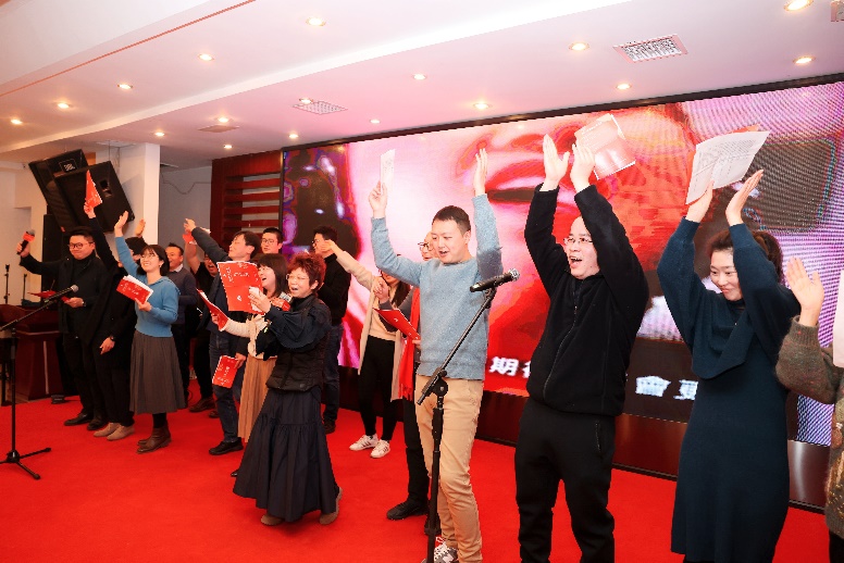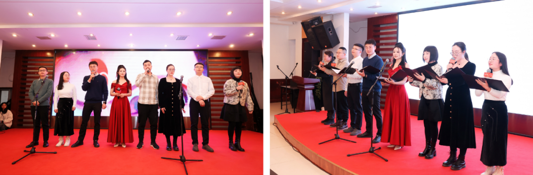 王斌老师演唱的京剧名曲《三家店》,字正腔圆,韵味十足,使晚会惊喜不断,而具有港风韵味的梁林老师带来的《365个祝福》,欢快跳跃的节奏,走下舞台与现场老师们握手互动,共唱经典老歌,更是让晚会热浪喧天。