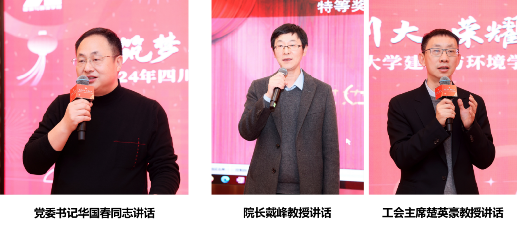 晚会中学院党委书记华国春同志、院长戴峰教授、工会主席楚英豪主席分别讲话,就2023年各项工作做了总结,高度肯定了全院教职工对学院工作的努力付出与所做的贡献,预祝晚会成功举办,并为全院教职工送上了新年真诚的祝福。