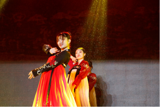 晚会伴随着活力四射的乐队歌曲《皮囊》拉开序幕。第一幕中,国风舞蹈《清平乐》如太白诗词游舞今世,将众人心绪载到山水之中;幽默风趣的小品《贷字闺中》在欢声笑语中警示同学远离校园贷,赢得满堂喝彩;热情似火的街舞串烧《Dance Party》舞出了大学生年轻的活力与青春的风采;2020级辅导员杨颖、王婷婷老师的登台演唱引起全场阵阵欢呼,点燃了晚会现场的氛围。