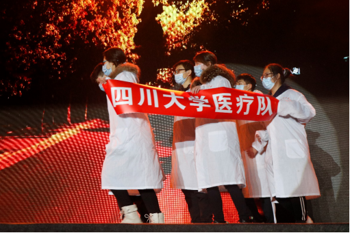 第二幕中,抗疫话剧《幸好有你》通过普通人的视角,向我们展示了疫情期间万千英雄逆行抗疫的坚定态度,使现场观众再次拾起那份感动去感受抗疫工作者的决心;朗诵《战疫》让观众们听到了坚定不移的中国声音,感受到每一个顽强的中国人的奋斗热忱,令观众们激情澎湃;激情的说唱串烧《华夏》表达了华夏儿女对祖国深深的热爱之情,强烈的节奏感将晚会的氛围推向了高潮;励志歌舞节目《我们都是追梦人》展现出新时代青年对美好生活的向往和奋斗追梦的姿态,现场气氛再次“燃”了起来。