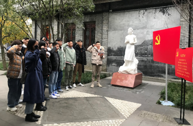 参观过程中,全体党员同志佩戴党徽,紧紧跟随讲解员的讲解,依次参观了江姐纪念展、川大英烈展、女生宿舍还原、染布场景还原和浮雕墙。在参观地过程中,同学们再次回顾了江姐的成长的经历,深入学习了江竹筠烈士的入党经历、在川大的学习生活以及革命英雄的事迹。在川大英烈展部分,同学们深深为各位革命烈士的坚定与奉献精神所动容,也更加坚定了自己为共产主义事业奋斗终生的决心。在还原的女生宿舍、染布场景及浮雕墙边,同学们更加近距离的感受到了革命先烈的热忱,心中的敬佩也更深了几分。