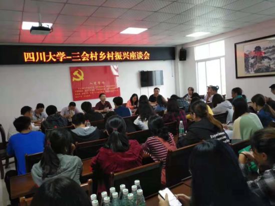 活动与设计课程、建筑系党支部党建活动相结合,为三会村乡村振兴规划的前期调研、资料收集和整理工作及后期的详细规划设计等打下基础。团队一行到达三会村后,首先参加了三会村驻村第一书记黄本波书记、镇党委书记胡波书记、镇党委副书记干晓宇老师等主持的情况介绍会,向同学们介绍三会村基本情况和第一期建设成果。会上,同学们就三会村现状和未来建设情况与各位党、村干部积极交流,以便更清晰地了解三会村总体概况。