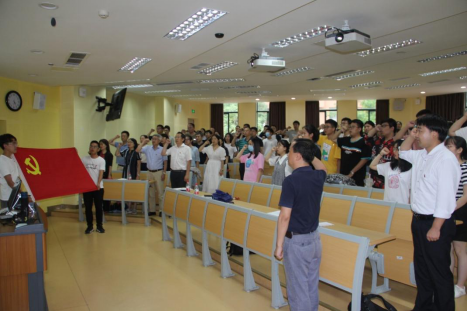 随后,学院党委书记蒋文涛带领与会师生党员举行入党宣誓仪式,与会党员一起重温入党誓词。