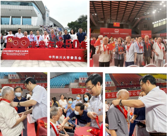 6月23日,望江校区体育馆,学校隆重举行“光荣在党50年”纪念章颁发仪式。学院13位老党员获“光荣在党50年”纪念章6位在党50年老党员同志出席了仪式。