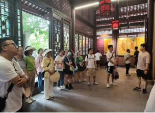 进入三苏祠,映入眼帘的便是习近平总书记考察三苏祠时留下的谆谆教诲。“一滴水可以见太阳,一个三苏祠可以看出我们中华文化的博大精深。我们说要坚定文化自信,中国有‘三苏’,这就是一个重要例证。”三苏祠内绿荫蔽日,碧渠环绕,每一处景致都见证了苏氏父子勤学修身的故事和苏家优良家风的传承。书房“来凤轩”静以致远,苏家兄弟选择在此发愤苦读,让同学们明白了勤学苦干的意义;木假山堂远近错落,提醒着同学们遇事要善调研、知全貌;披风榭门前,“浩然正气”四字高悬,提醒着各位选调生从政的底线……苏轼一生虽然仕途坎坷,但始终怀有一颗心系百姓的赤诚之心。这种精神是中华优秀传统文化中“以人民为中心”思想的生动体现,是选调生们未来工作的力量之源。