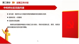 首先,姚晨熙同志向大家介绍了支部发展情况,包括组织架构、党员人数等。其次,在支部组织生活的开展方面,姚晨熙同志就中和桥“菁创田园、绿意同行”社区花园改造设计主题党日活动进行了详细介绍,项目以居民关注的环境优化、公共空间服务、生态文明参观为出发点,由支部党员、志愿者及社区居民共同完成场地设计、植物选择和后期共建,通过引领多元主体共同参与,组织辖区居民、物业多方联动,助力社区发展,切实落实“学思想、强党性、重实践、建新功”的主题教育要求,把理论学习成效转化为服务社会发展的生动实践。此外,支部还开展了主题教育动员大会、主题党课、职业生涯计划交流等活动。最后,姚晨熙同志向大家介绍了近期的工作计划,包括读书分享会、基层调研以及中和桥社区花园共建的进一步深化。