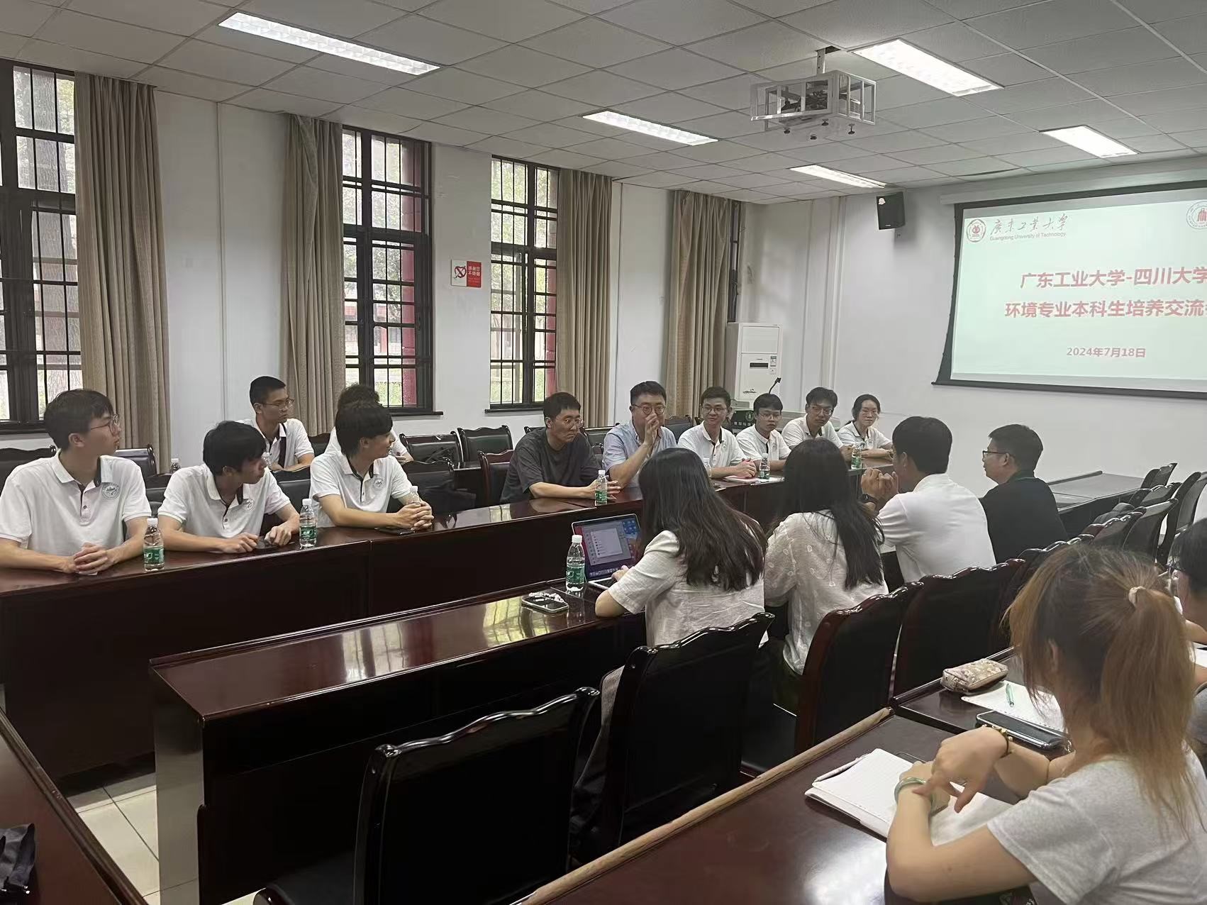 2024年7月18日,广东工业大学生态环境与资源学院环境工程专业师生一行到访到访yl23455永利集团建筑与环境学院环境系。双方就环境专业本科生培养举行了交流会。出席活动的有广东工业大学生态环境与资源学院副院长马金星、杨奎老师及10余名本科生,建环学院环境系副系主任杜烨、副系主任熊兆锟、何传书老师,碳中和未来技术学院吴霁薇老师及环境系10余名本科生。